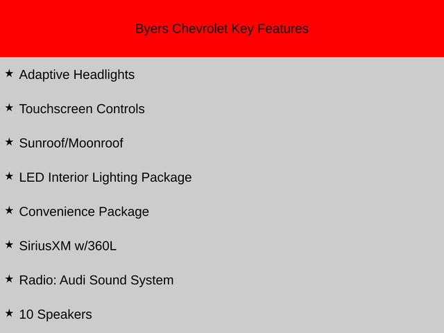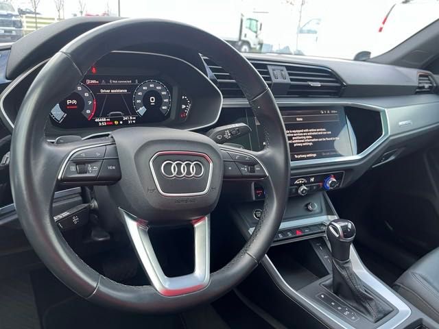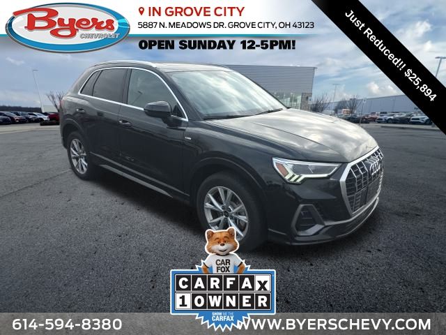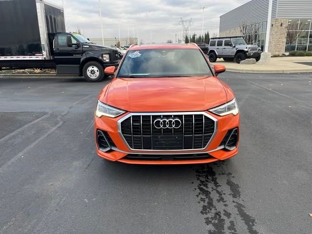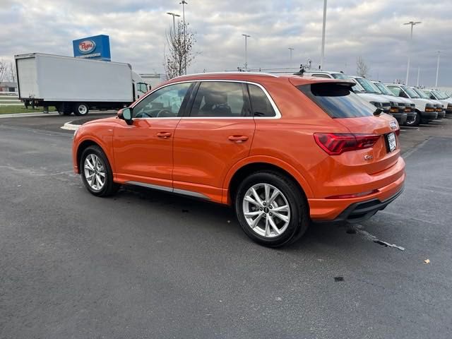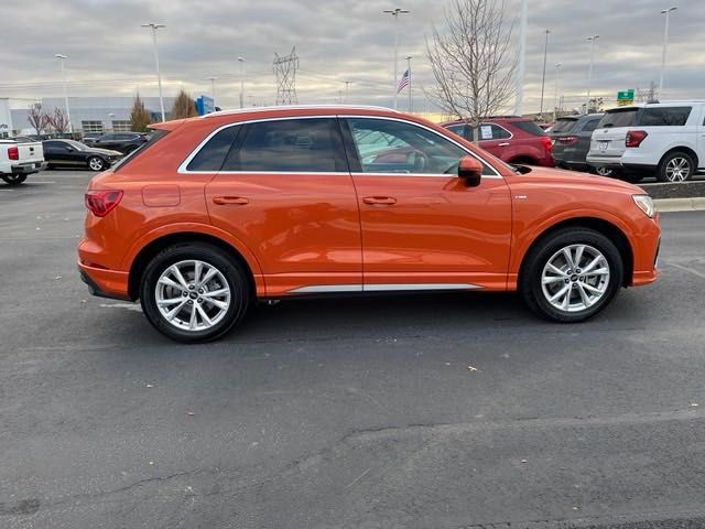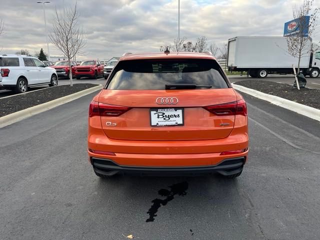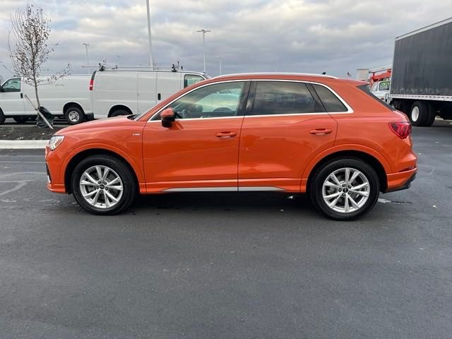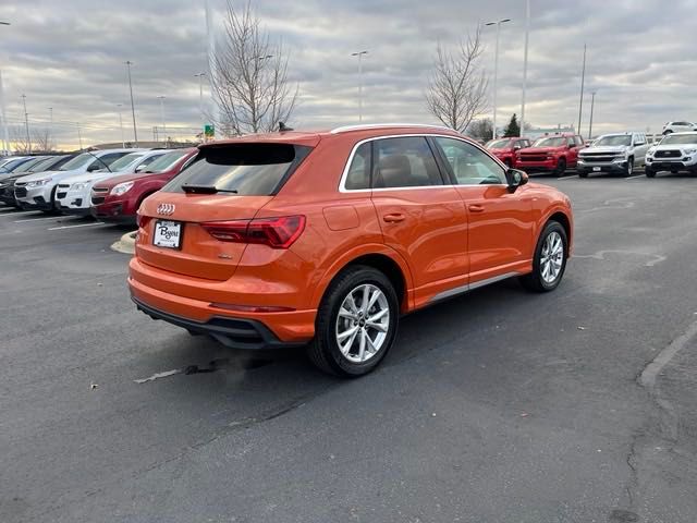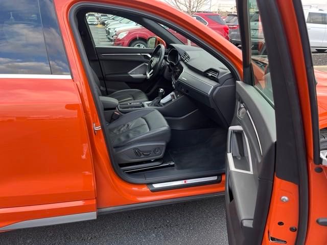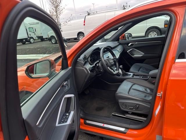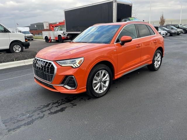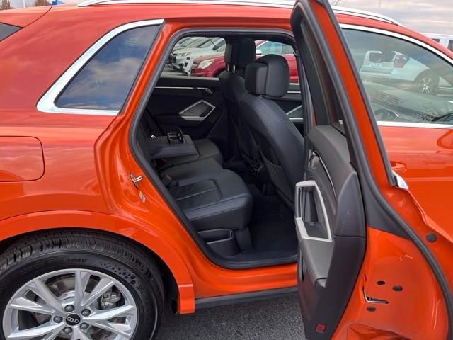 2023 Pulse Orange Audi Q3 Premium S Line quattro quattro 2.0L 4-Cylinder TFSI This Audi Q3 has many features and is well equipped including, Adaptive Headlights, Touchscreen Controls, Sunroof/Moonroof, 10 Speakers, ABS brakes, Alarm w/Motion Sensor, Audi Advanced Key, Audi smartphone interface (Apple CarPlay/Android Auto), Auto High-beam Headlights, Auto-Dimming Power-Folding Exterior Mirrors, Automatic temperature control, Convenience Package, Driver Seat Memory, Electronic Stability Control, Emergency communication system: Audi connect CARE, Exterior Parking Camera Rear, Four wheel independent suspension, Frameless Auto-Dimming Interior Mirror w/Compass, Fully automatic headlights, Heated Front Bucket Seats, Leather Seating Surfaces, LED Interior Lighting Package, Power Liftgate, Power moonroof: Panoramic, Radio: Audi Sound System, Rain sensing wipers, SiriusXM w/360L, Speed-sensing steering, Steering wheel mounted audio controls, Traction control, Wheels: 18" 5-V-Spoke-S Design.Priced below KBB Fair Purchase Price! Clean CARFAX. CARFAX One-Owner. 21/28 City/Highway MPGThank you for taking the time to look at this wonderful-looking 2023 Audi Q3. Please visit our website for a full list of available inventory. www.ByersChevy.com.