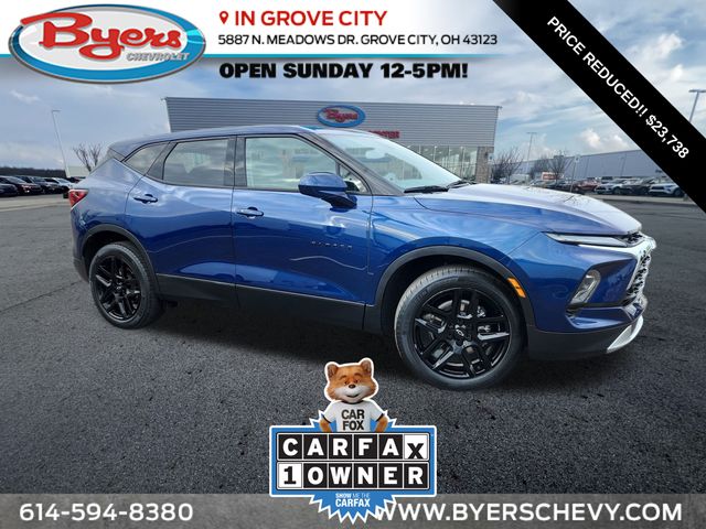 Get a free Carfax report at www.ByersChevy.com. 2023 Blue Glow Metallic Chevrolet Blazer LT FWD 2.0L Turbocharged Collision Avoidance System, Collision Warning System, Lane Keeping Assist, Carfax One Owner, New Car Trade, ABS brakes, Apple CarPlay/Android Auto, Auto High-beam Headlights, Automatic temperature control, Black Lug Nut & Wheel Lock Kit (LPO), Electronic Stability Control, Emergency communication system: OnStar and Chevrolet connected services capable, Fully automatic headlights, Gloss Black Emblem Kit (LPO), Heated door mirrors, Preferred Equipment Group 2LT, Premium audio system: Chevrolet Infotainment 3 Plus, Ride & Handling Suspension, Security system, Wheels: 20" Gloss Black Aluminum.Priced below KBB Fair Purchase Price! Clean CARFAX. CARFAX One-Owner. 22/29 City/Highway MPGThank you for taking the time to look at this wonderful 2023 Chevrolet Blazer. Please visit our website for a full list of available inventory. www.ByersChevy.com.